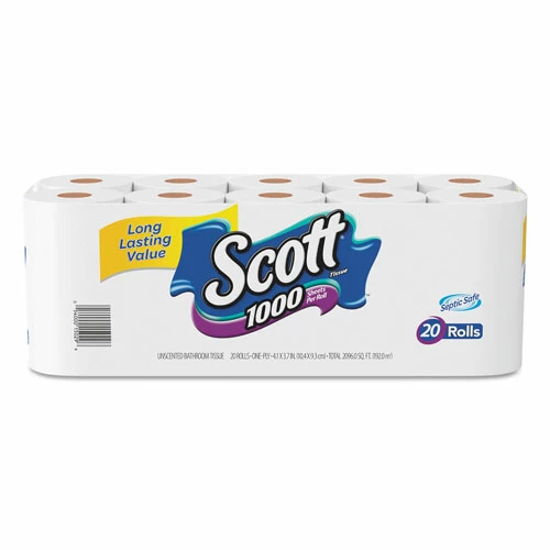 Scott 1000 Bath Tissue delivers a long-lasting roll so you can enjoy fewer roll changes and more value. Each toilet paper roll contains 1,000 sheets. Plus, the one-ply bathroom tissue dissolves quickly so it’s kinder to your plumbing and safe for sewer and septic systems. You can even use it in your RV or boat. Rolls fit on traditional, household, bathroom tissue dispensers.