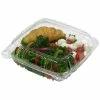 Microwavable and vented anti-fog container will withstand temperatures to 230Β°F under heat lamps, in warming units or microwaves. Upgrade from foam with this affordable option. Same interior food space as foam clamshell. Convenient case pack for retail in store packaging and storing.