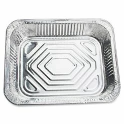 Aluminum pan combines the strength and durability of aluminum foil to safely accommodate hot or cold foods. Its multipurpose design lets you prepare, heat, refrigerate, ship and serve in the same pan for a quick, easy way to prepare your meals. Disposable material allows virtually immediate cleanup after each use. Half-size pan is perfect for company events, catering, carryout meals and more.