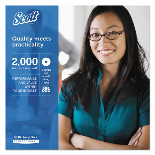 Scottยฎ Essential JRT Bathroom Tissue is the reliable and practical choice. One roll of this high capacity tissue equals nearly 5 standard rolls. This system is ideal for those high traffic areas by helping reduce run-outs and re-fills. Meets EPA Standards for minimum post consumer waste content.