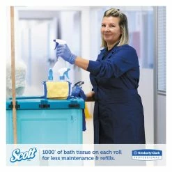 Scottยฎ Essential JRT Bathroom Tissue is the reliable and practical choice. One roll of this high capacity tissue equals nearly 5 standard rolls. This system is ideal for those high traffic areas by helping reduce run-outs and re-fills. Meets EPA Standards for minimum post consumer waste content.