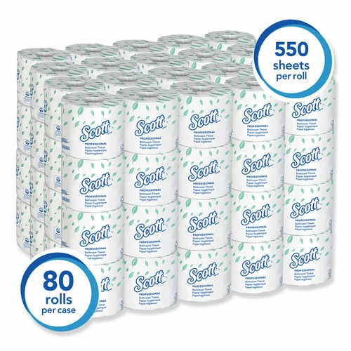 Scott Essential provides reliable balance of efficiency, performance and value. When you’re looking for practical products for your business restroom, Scott Essential Bulk Toilet Paper Standard Roll is a smart choice. This recycled toilet tissue is the ideal blend of terrific performance and value. Each sheet is strong and absorbent, giving you a consistent, reliable experience for your bathroom visitors (even in high-traffic/commercial/ industrial areas). With 100% recycled fiber (RF) content, it meets EPA standards. Plus, the bulk rolls are individually wrapped (they’re protected until you’re ready to use them) and fit with most universal toilet paper dispensers. If practicality, reliability and value top your list of criteria for bathroom supplies, trust Scott Essential Standard Roll Bath Tissue!