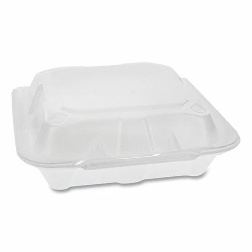 Durable foam construction makes hinged lid containers a perfect lunchtime or dinnertime choice. Containers are insulated to maintain food temperatures at their tastiest. Excellent for use with both hot and cold foods.