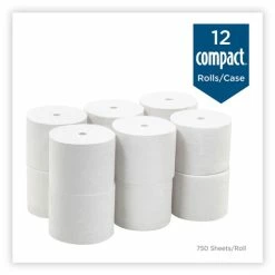 Stock your restrooms with premium, ultra-soft bath tissue! Coreless rolls provide up to two times the number of sheets as standard rolls, saving you time and money. Unique packaging allows easy storage and minimizes waste. Tissue Type: Toilet; Number of Plies: 2; Number of Sheets: 750 per roll; Length: 4 1/20″. Meets or exceeds EPA comprehensive guidelines for minimum post-consumer recycled fiber content.
