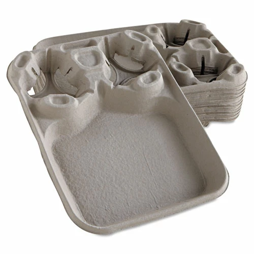 Indispensable trays securely hold full beverage cups. Convenient food compartment allows you to fill a whole order in one to-go container. Sturdy molded fiber construction minimizes the potential for tips and spills. Easy-to-load, nesting design simplifies order filling while minimizing storage space usage.