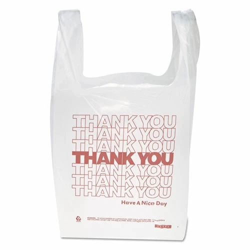 These plastic bags are imprinted with the “Thank You” message in a bright orange color. They measure 11.5″ (width) X 6.5″ (girth) X 21″ (length). ReStockIt.com sells these plastic t-shirt bags in a case of 900, making this purchase perfect for large commercial use. ReStockIt.com also sells many other varieties of carryout bags at a discounted price.