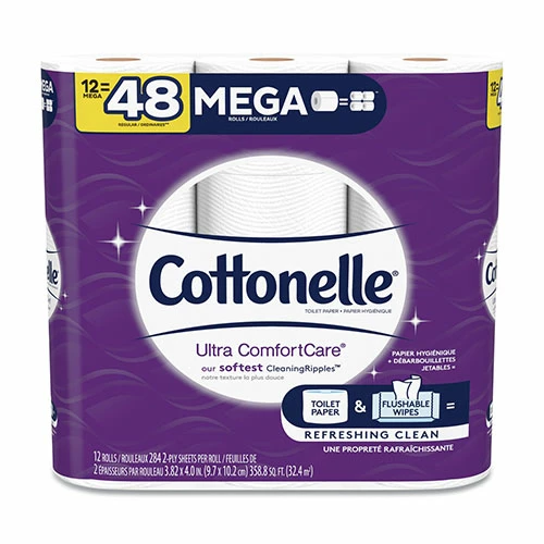 Cottonelle ComfortCare two ply toilet tissue is septic-safe, sewer-safe, and paraben-free. Uniquely designed with a Wavy CleanRipple Texture that removes more and is three times thicker, stronger, and more absorbent per sheet. Cottonelle ComfortCare Bathroom Tissue is premium bathroom tissue that is exceptionally soft, designed with strength, for an effective clean.