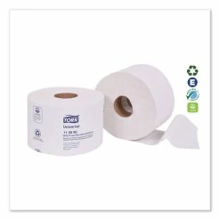 Tork® Universal Bath Tissue Roll with OptiCore® features patented two-part core that offers reduction in product waste and cost, ensuring maximum use of each roll before advancing to the next. Ideal for cost-conscious high traffic washrooms. All Tork® bath tissue products are safe for septic systems.